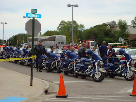 With only a couple of weeks to go until the Utah motorcycle trip with my dad, it was quite a site to see 40 Michigan State Police ElectraGlide Harley Davidsons lined up in the Obama motorcade. Very, very cool. It was just starting to rain as these troopers waited for Obama to emerge from the RTC. They casually donned their rain gear (it's not a short drive to Farmington Hills). It got me pyched for the Utah trip (though I am renting a StreetGlide).